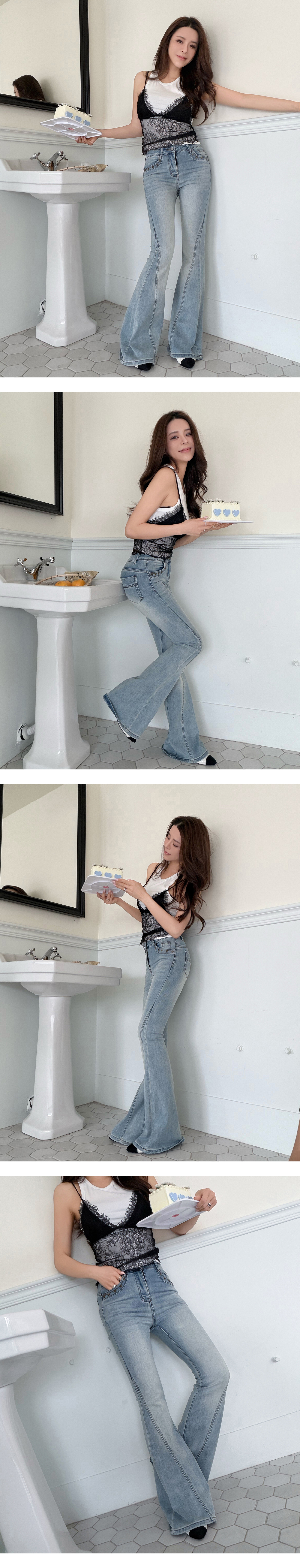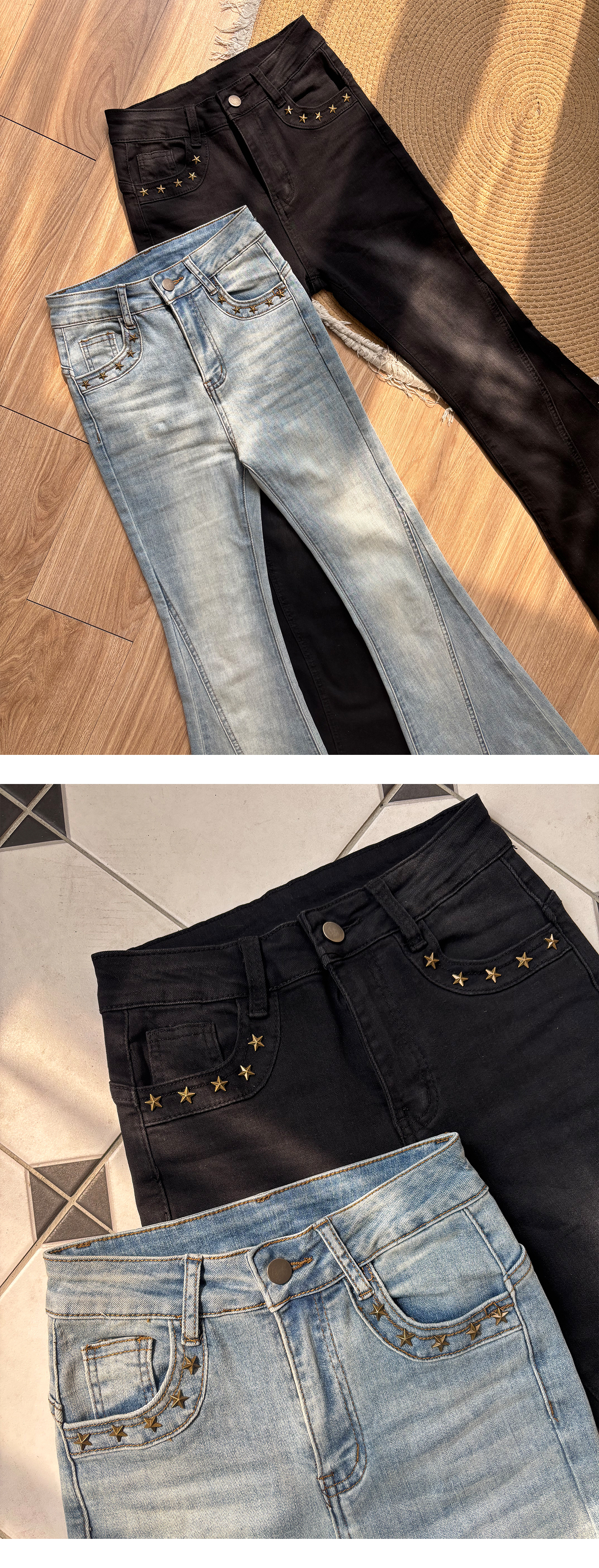 星星鉚釘顯瘦牛仔喇叭褲