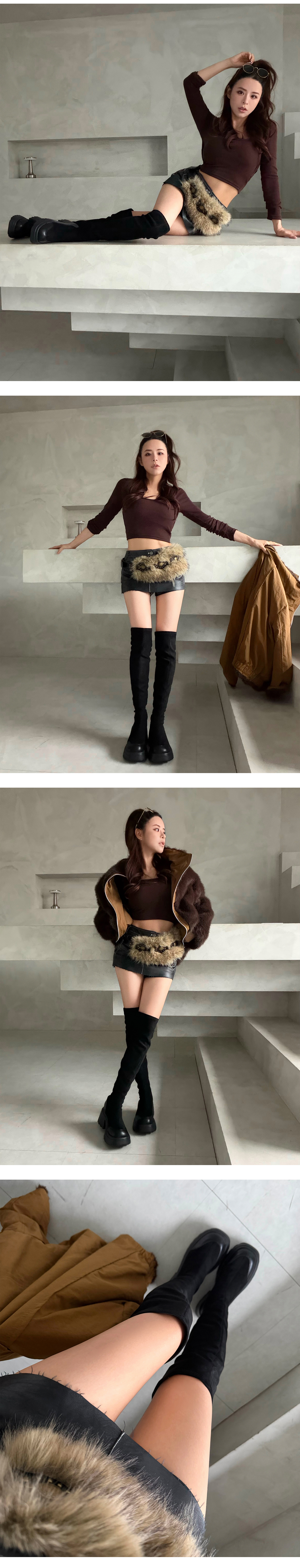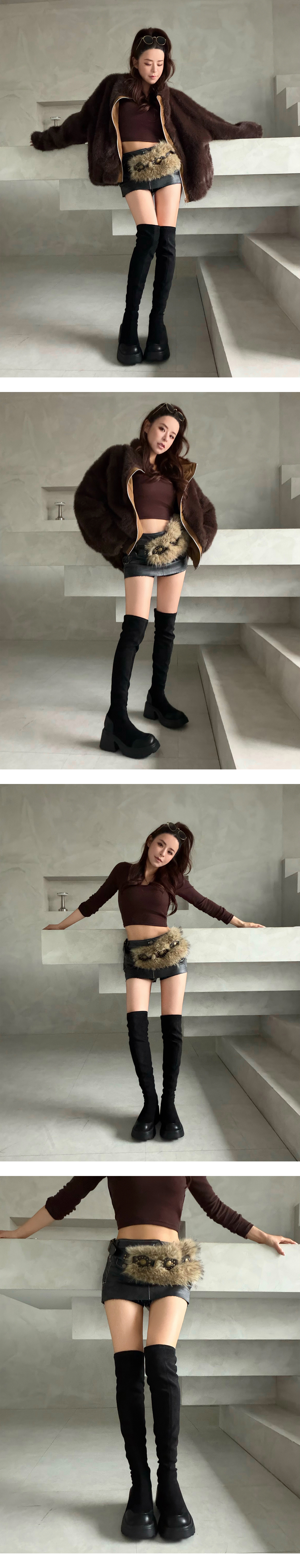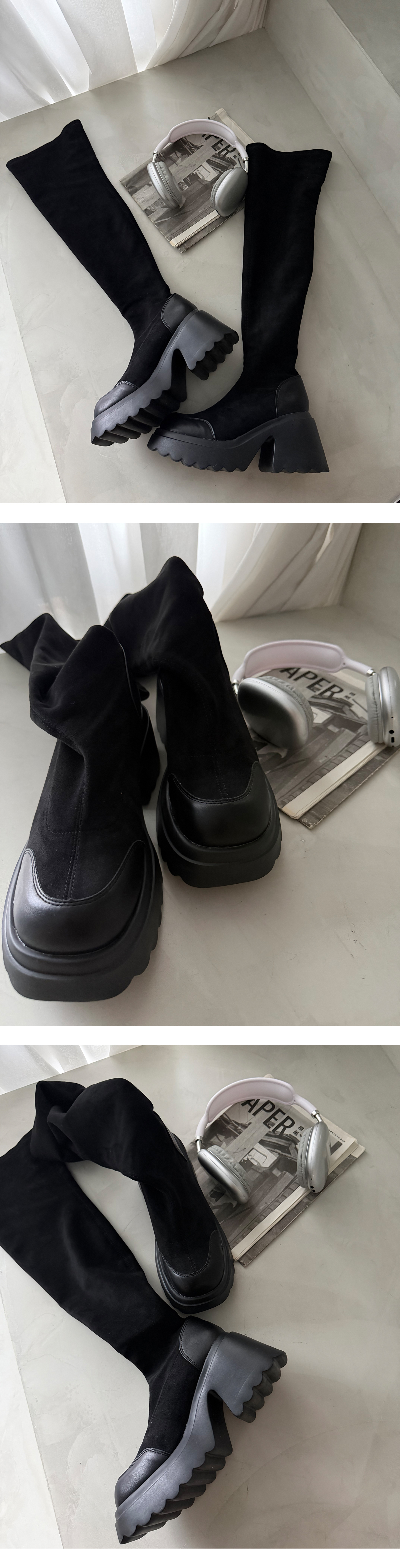 激瘦厚底增高麂皮過膝長靴