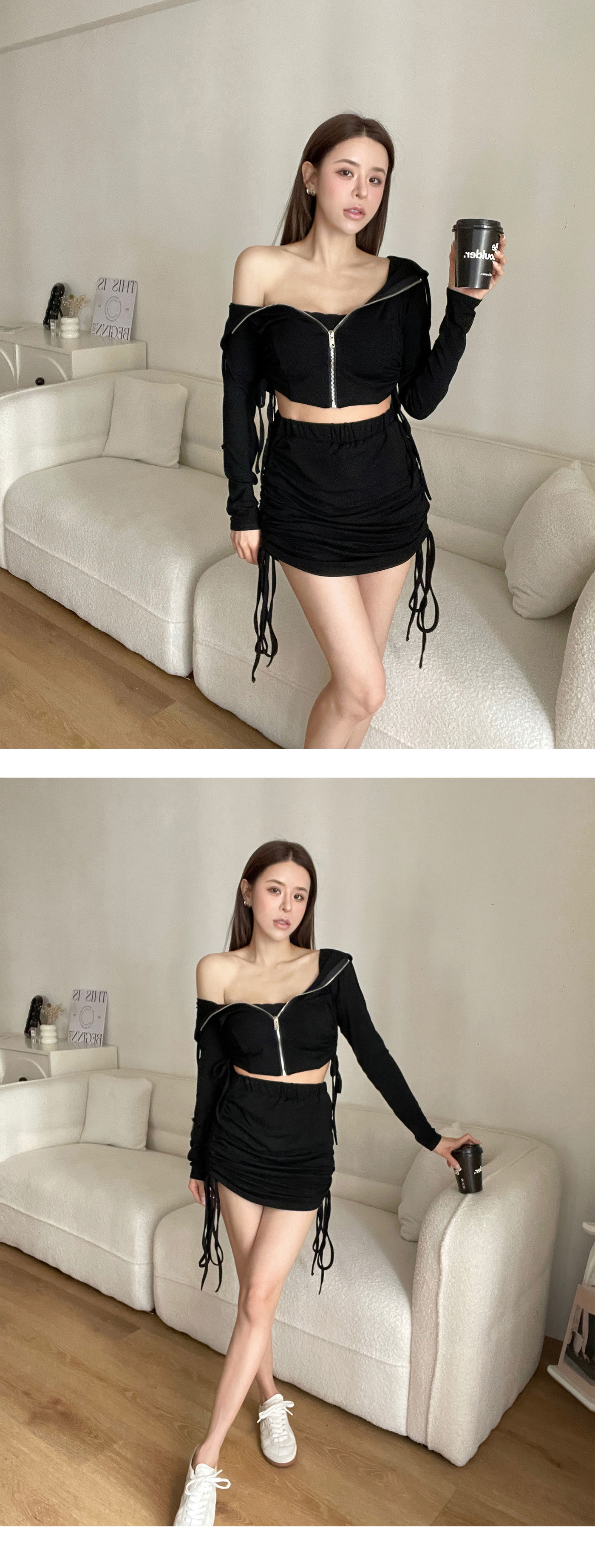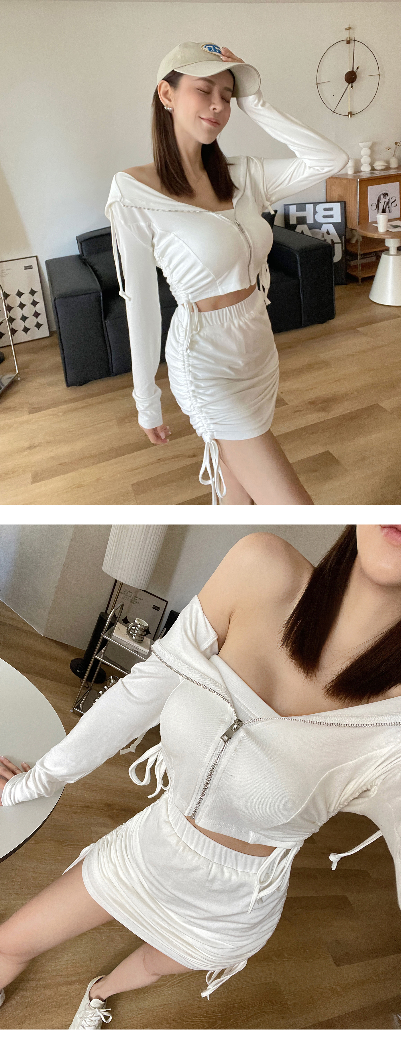 抓皺綁繩舒服連帽套裝(外套+裙子)