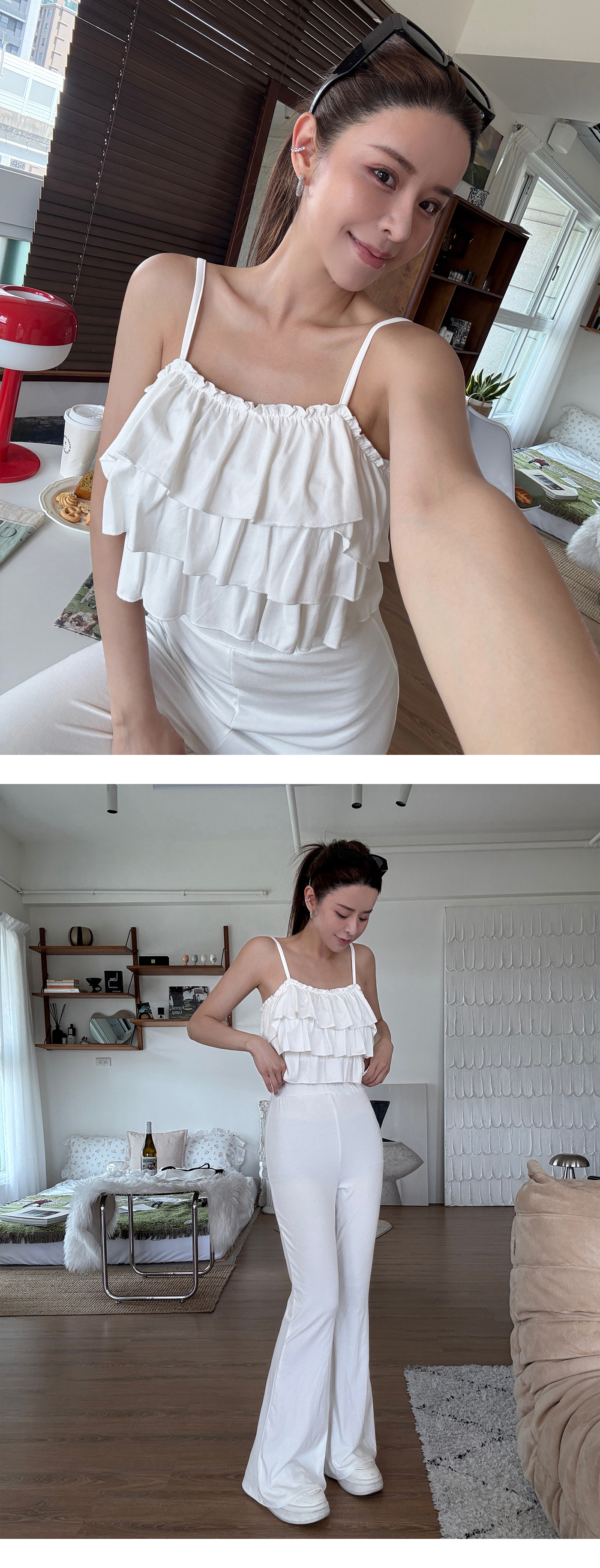 飄逸層次蛋糕上衣長褲套裝