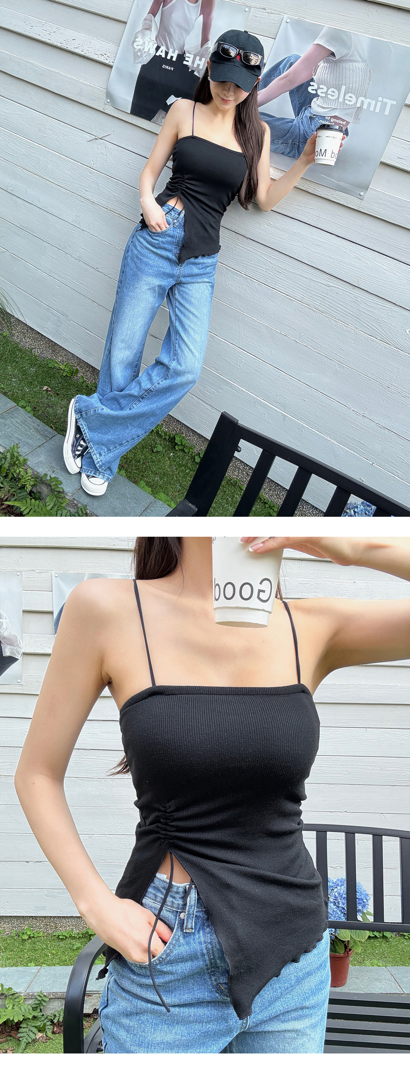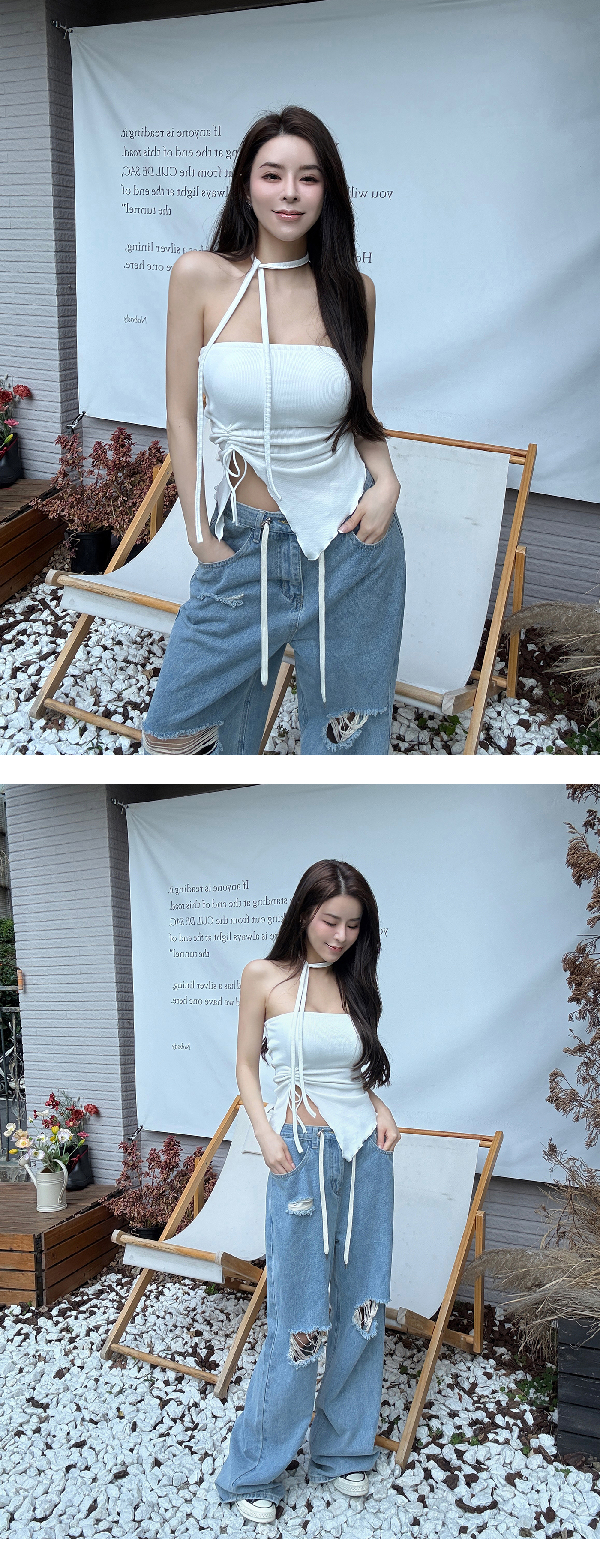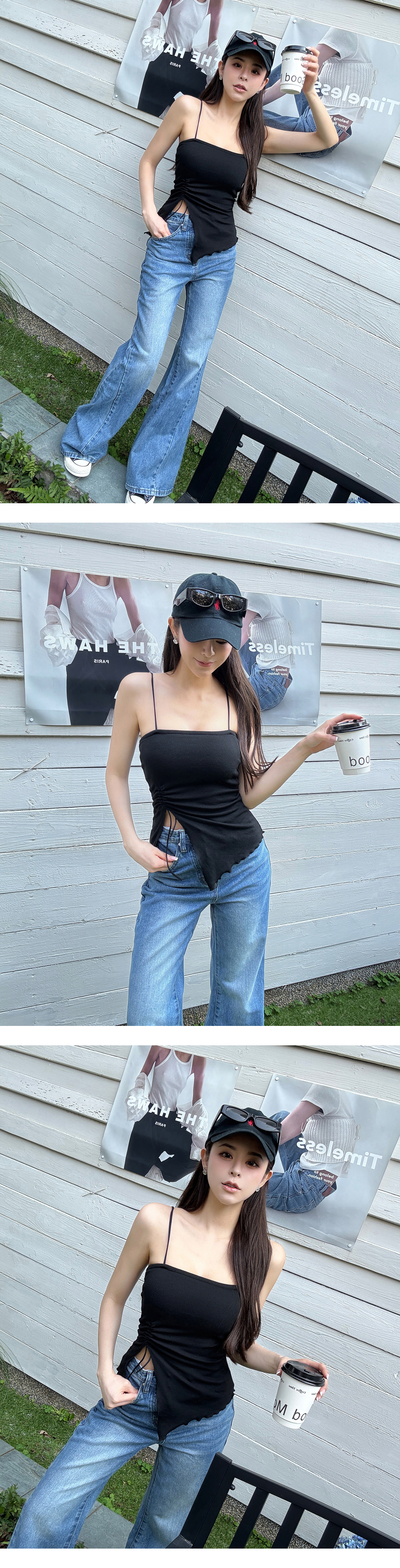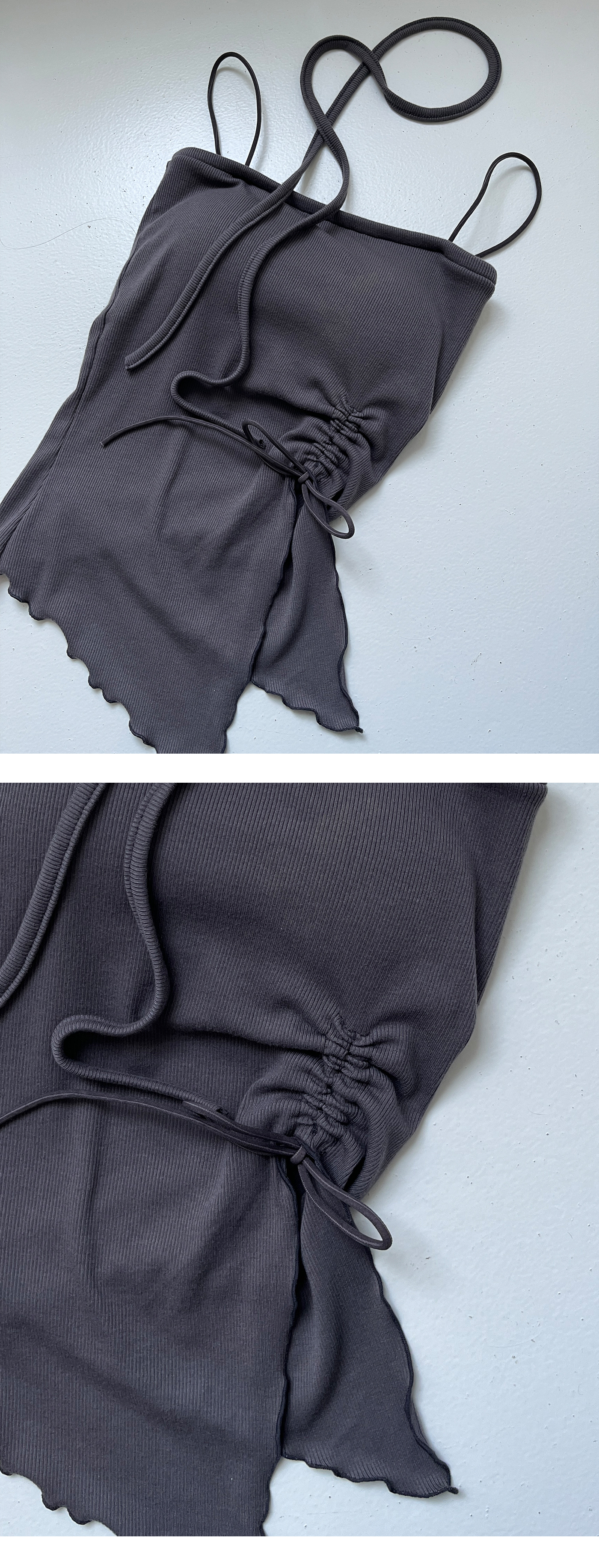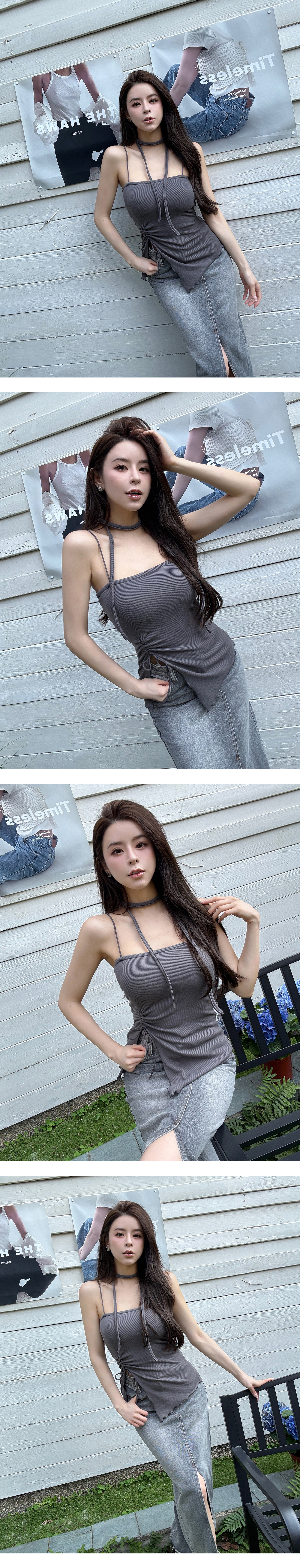 平口抓皺細肩BRA上衣(附綁繩)