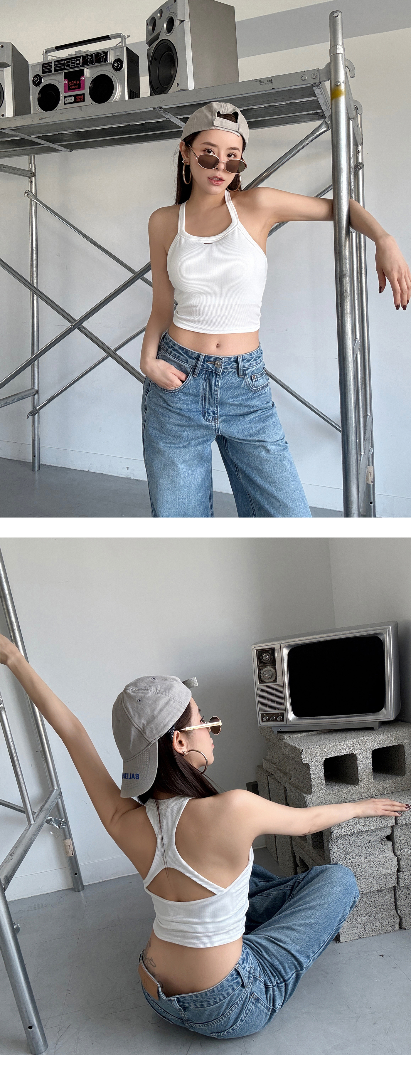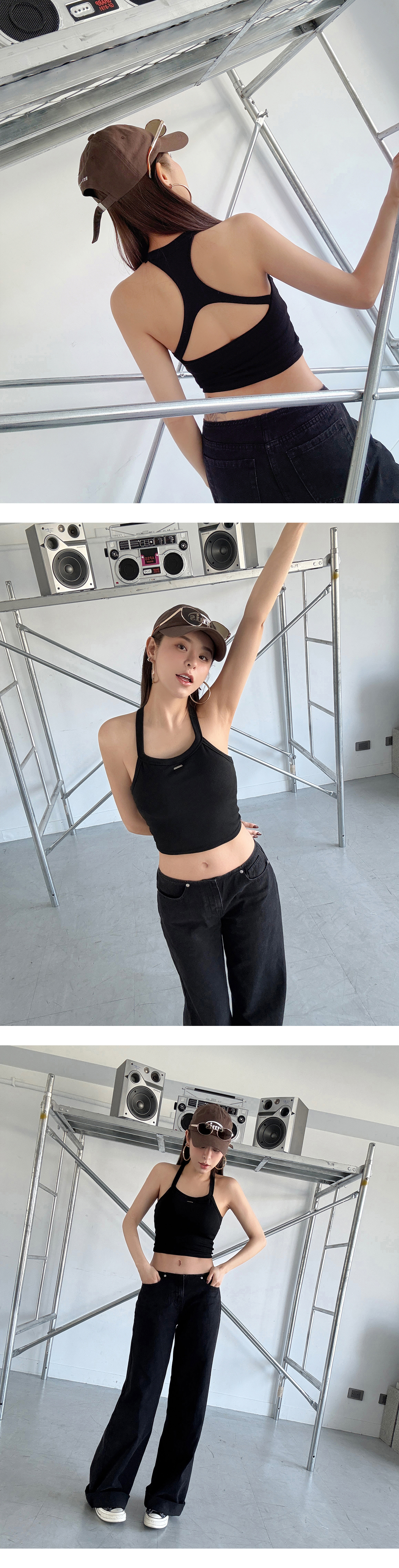 圓領辣挖背附BRA削肩背心