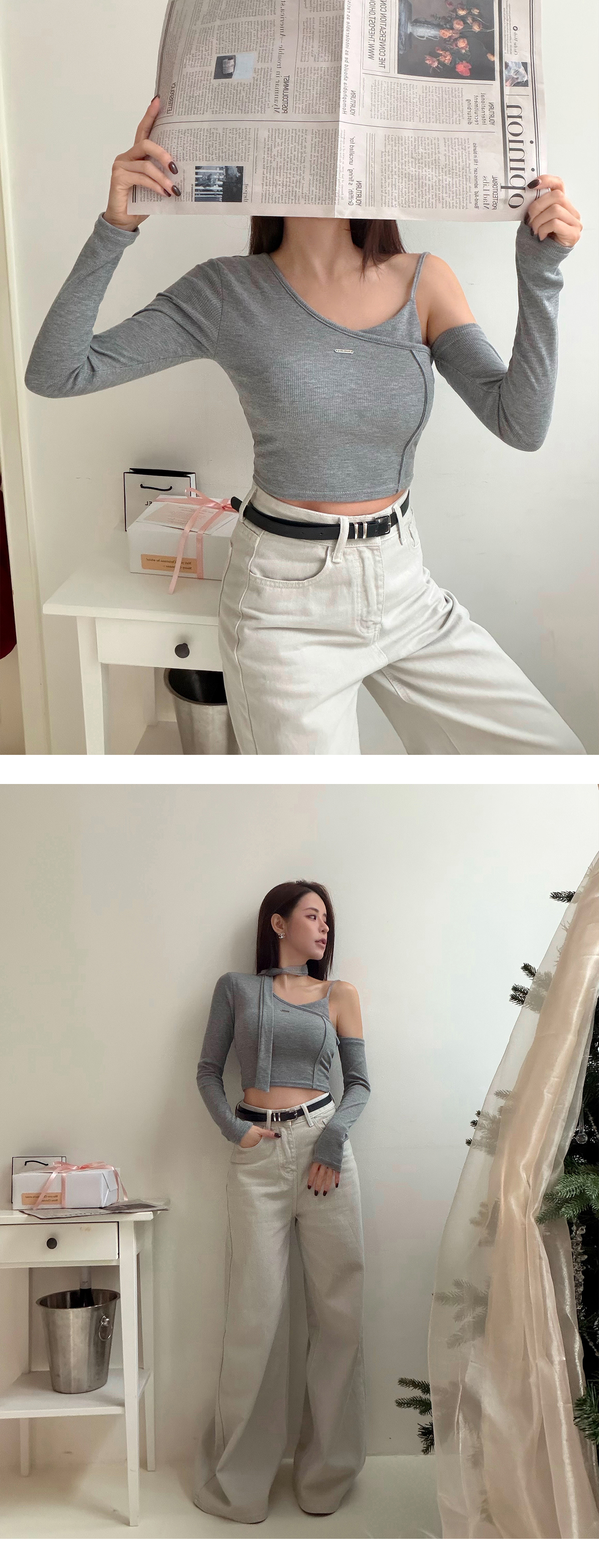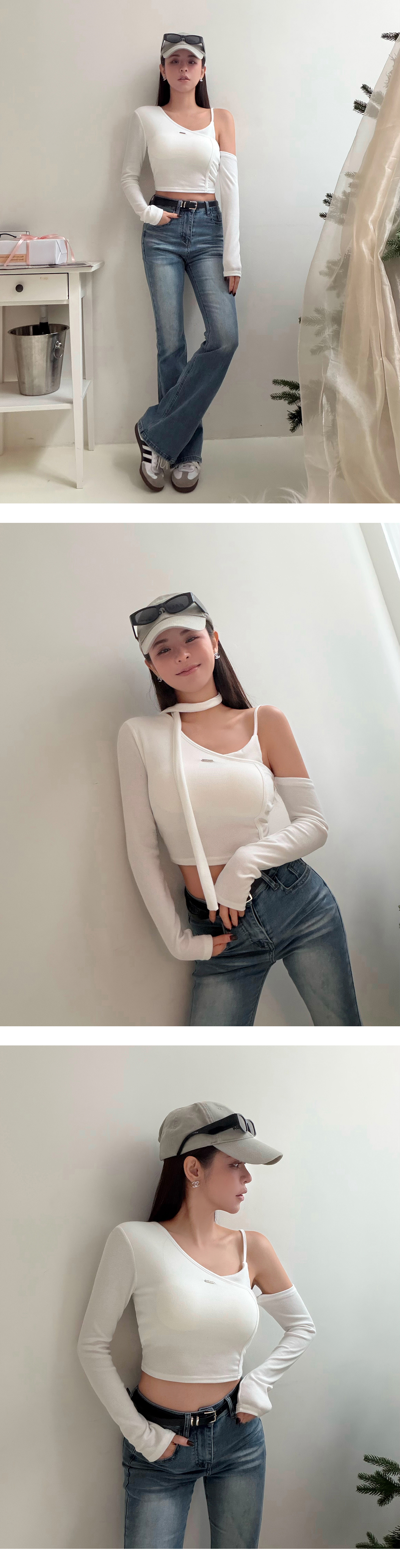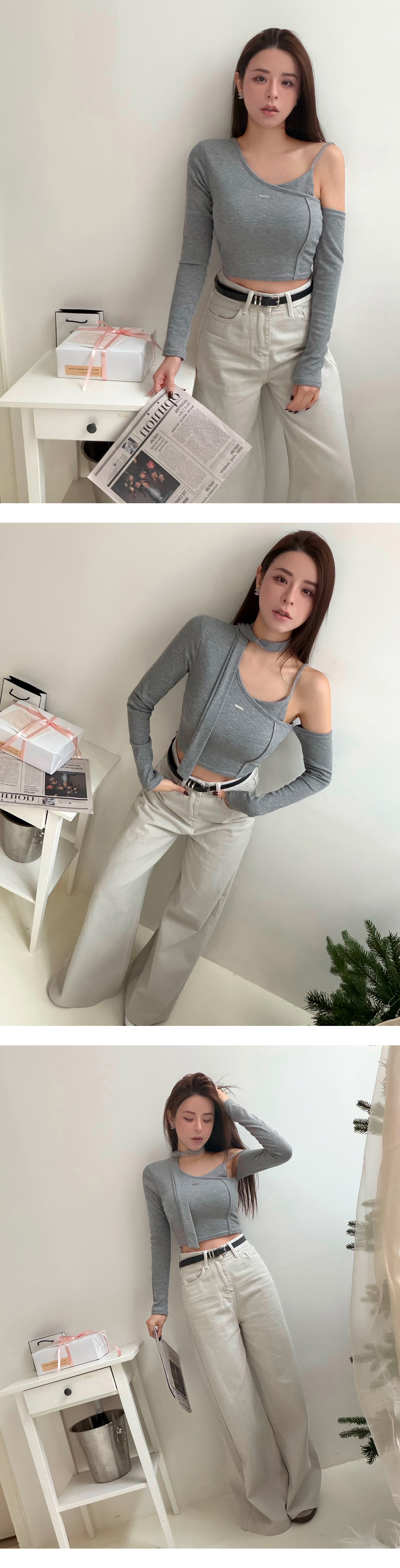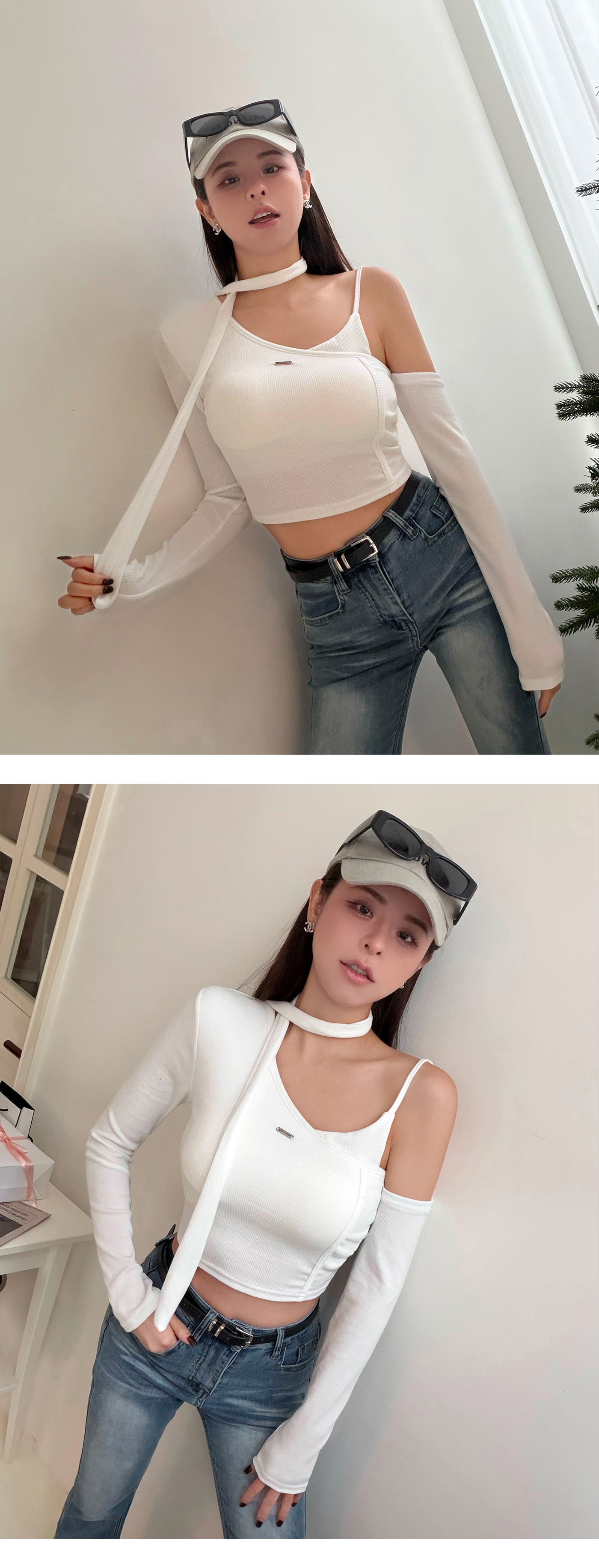斜肩細帶造型BRA上衣(附繞脖)