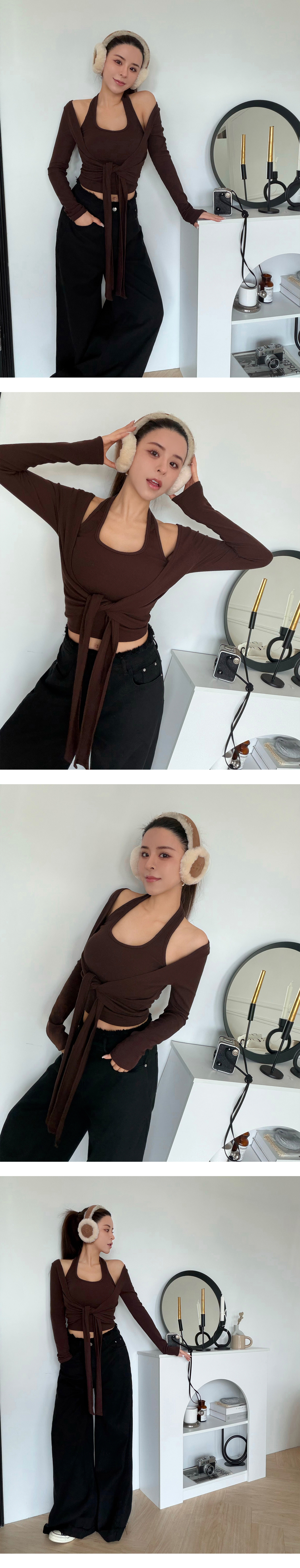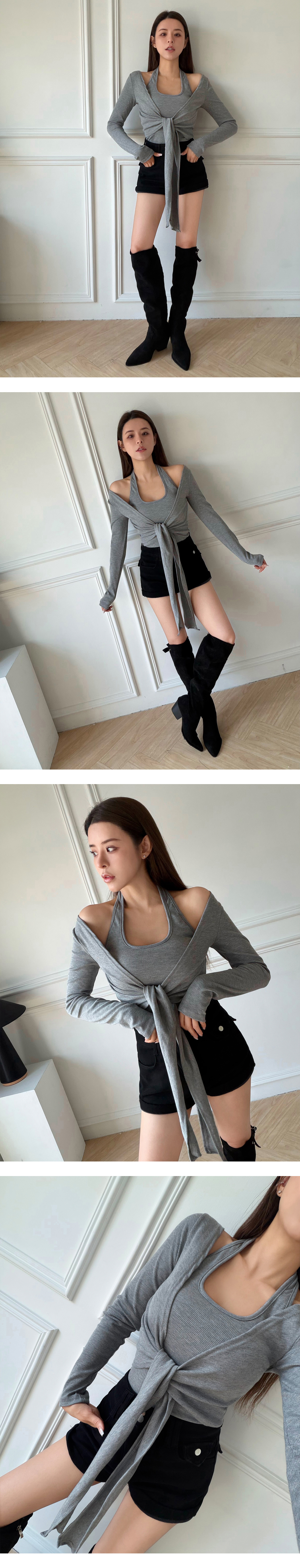 繞脖綁結假兩件BRA上衣